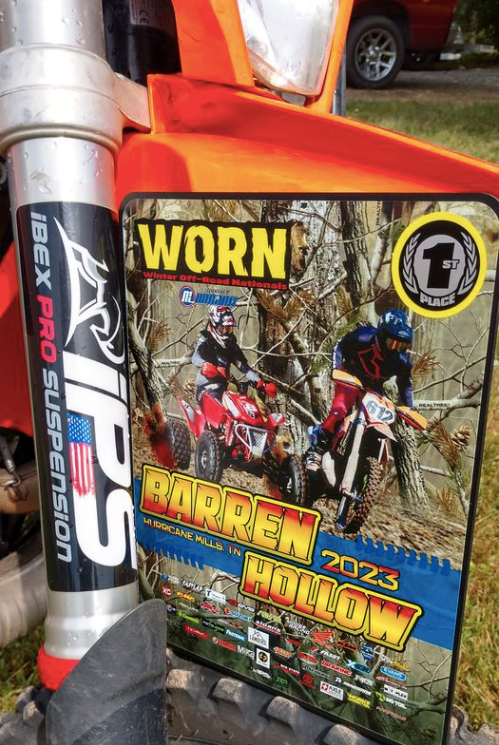 had its ups and downs. Got the hole shot but dropped it about a quarter mile into the trail. Got back up to 2nd and went for a pass over a creek and slammed the ground and hurt my shoulder. Finally calmed down and got back into the lead! 1st out of 9 in class and 39th out of 175 overall! Really enjoying my Ibex Pro Suspension!"